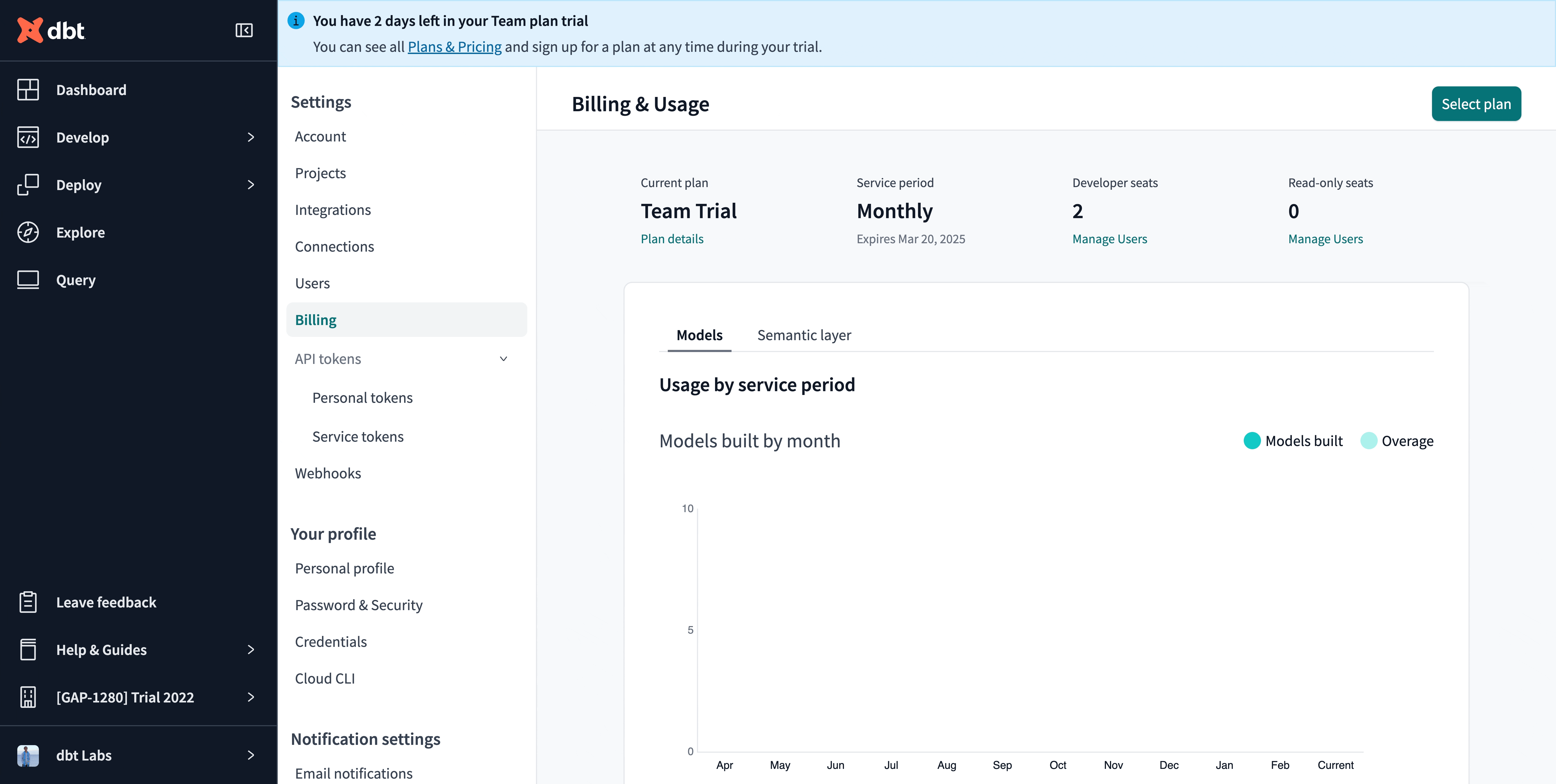 3. This automatically unlocks your dbt account, and you can now enjoy the benefits of the Developer plan. 🎉